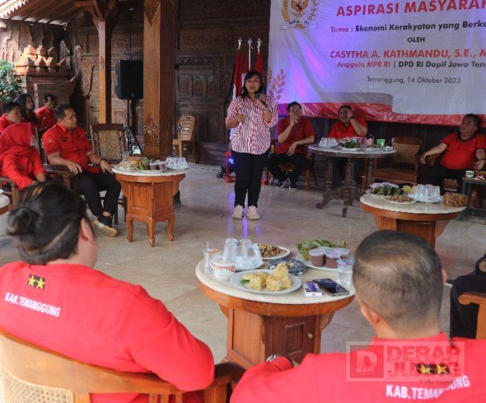 Sementara itu, Ketua DPC Temanggung, Yunianto memberikan apresiasi kepada Mbak Casytha, karena telah memberikan dedikasi penuh untuk kesejahteraan masyarakat. “Beliau ini identik dengan tagline Duta Warga Jateng. Sebagai duta, artinya beliau berkeliling terus di 35 kabupaten/kota dan mengupayakan yang terbaik untuk masyarakat. Kita apresiasi beliau, karena ini juga mencerminkan upaya untuk mengaktualisasikan ide-ide Bung Karno, yakni memperkuat tenaga Kaum Marhaen atau Wong Cilik,” ujarnya.