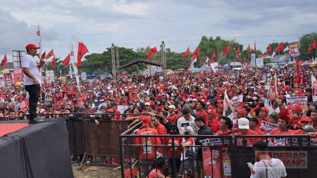 Kabupaten Pati – Ribuan kader, relawan dan masyarakat dari berbagai penjuru Kabupaten Pati berbondong-bondong mengikuti kampanye akbar yang diselengggarakan DPC PDI Perjuangan Kabupaten Pati, di lapangan Kayen, Kecamatan Kayen, Kabupaten Pati, Senin (29/01/2024).