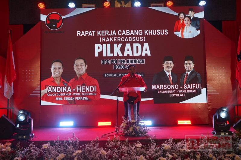 Acara tersebut berlangsung di Gedung Panti Marhaen DPC PDI Perjuangan Kabupaten Boyolali, yang dihadiri oleh Pengurus Anak Cabang Serta Ranting PDI Perjuangan se-Kabupaten Boyolali, Fraksi PDI Perjuangan DPRD Kabupaten Boyolali, dan juga Andika Perkasa serta Hendrar Prihadi selaku Cagub-Cawagub dari PDI Perjuangan.