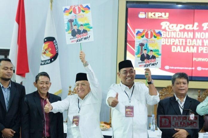 Paslon nomor urut 1, Hadi-Sugeng bersyukur mendapatkan nomor urut 1 dalam pengundian Pemilihan Bupati-Wakil Bupati Grobogan 2024-2029.
