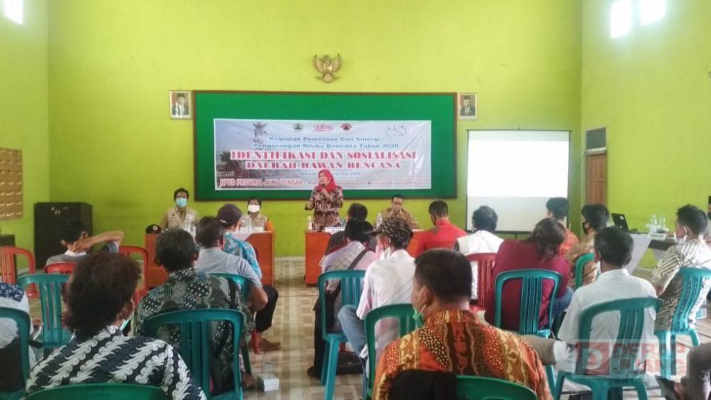 Kabupaten Kebumen – Anggota Fraksi PDI Perjuangan Jawa Tengah, Hj. Sri Ruwiyati, S.E., M.M., bersama tim dari Badan Penanggulangan Bencana Daerah (BPBD) Provinsi Jawa Tengah dan BPBD Kab. Kebumen kembali menggelar sosialisasi Protokol Kesehatan Covid-19, serta mitigasi kebencanaan. Kegiatan bertajuk “Pemetaan dan Sinergi Pengurangan Risiko Bencana Tahun 2020, Identifikasi dan Sosialialisasi Daerah Rawan Bencana”, dipusatkan di GOR Desa Semanding, Gombong, Senin (16/11/2020).