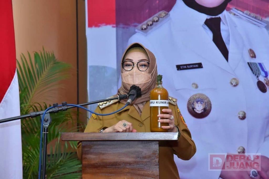 Kabupaten Sukoharjo – Bupati Sukoharjo, Hj. Etik Suryani meluncurkan gerakan minum jamu yang berlangsung di Loby Gedung Menara Wijaya. Gerakan ini mewajibkan semua Organisasi Perangkat Daerah (OPD) melaksanakan rutinitas minum jamu setiap hari Jumat. Program tersebut dalam upaya memberdayakan UMKM jamu. Selain OPD, budaya minum jamu tersebut juga diberlakukan untuk BUMD dan juga swasta, Senin (12/4/2021).