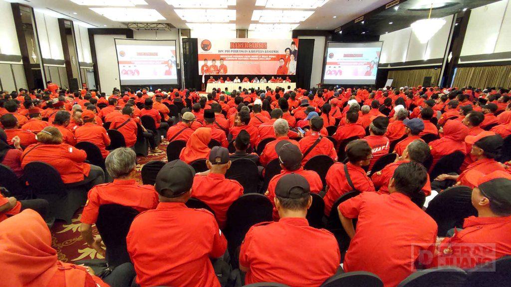 Kabupaten Banyumas – DPC PDI Perjuangan Kab. Banyumas menggelar Rapat Kerja Cabang Khusus (Rakercabsus) bersama segenap Partai Politik yang tergabung di Koalisi Banyumas Bersatu yang dihadiri jajaran pengurus Ranting PDI Perjuangan se-Kab. Banyumas dan perwakilan 12 Partai pengusung dan pendukung Pasangan Calon Bupati dan Wakil Bupati Banyumas, Sadewo-Lintarti yang dilaksanakan di Aula Kantor PDI Perjuangan Kab. Banyumas, pada Rabu (28/08/2024).