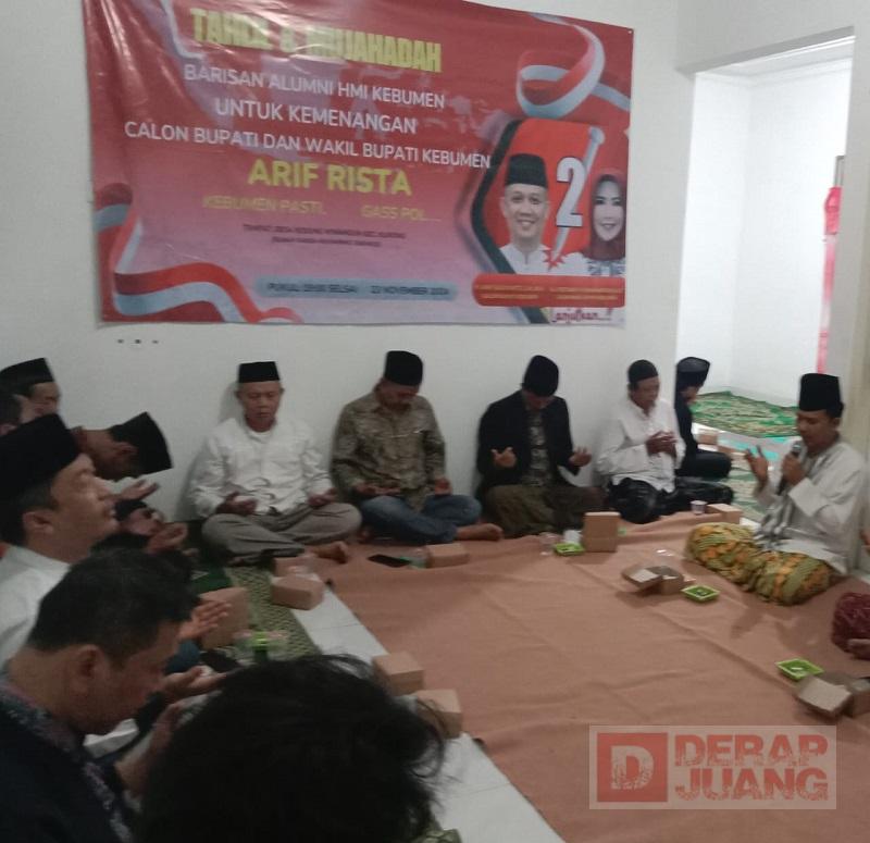 Koordinator Barisan Alumni HMI Kebumen, Kanda Muhammad Baehaqi dalam sambutannya menyampaikan acara ini merupakan ungkapan rasa syukur sekaligus untuk menjaga soliditas tim pemenangan Arif-Rista dari para alumni HMI di hari akhir masa kampanye.