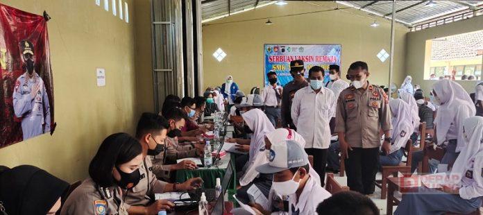 Kabupaten Pemalang – Ketua DPC PDI Perjuangan Kabupaten Pemalang, Dr. H. Junaedi meninjau pelaksanaan vaksinasi Covid-19 untuk siswa SMK Nusa Mandiri, Rabu (28/07/2021).