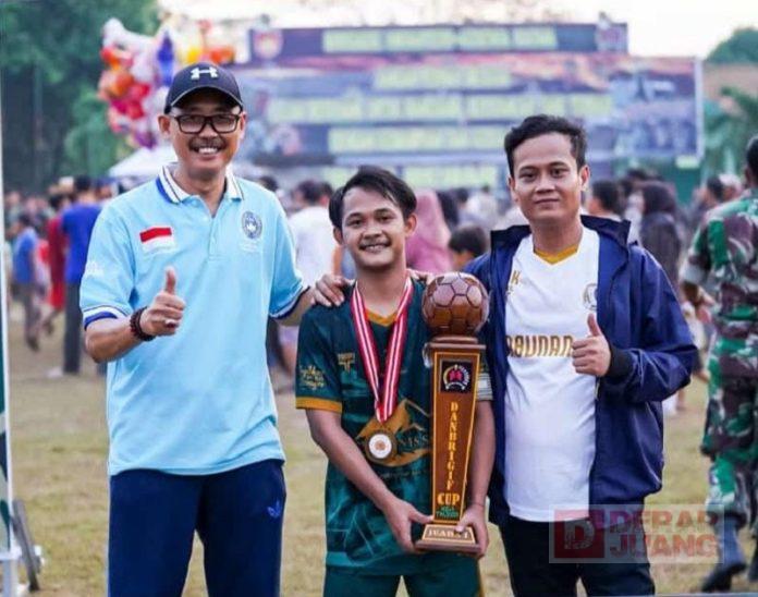 Kabupaten Tegal – KRT Sugono Adinagoro (Ketua Komisi I DPRD Kabupaten Tegal Fraksi PDI Perjuangan) hadiri pertandingan final Turnamen ‘Dan Brigif-4/DR Cup’ yang diikuti para penggiat sepak bola termasuk Kabunan FC binaan Agung Yudhi Kurniawan (AYK), di lapangan Komando Brigif-4/DR, pada Minggu (4/6/2023).