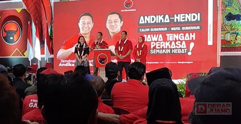 Kabupaten Banjarnegara – Pasangan Calon Gubernur dan Wakil Gubernur Jawa Tengah Jenderal TNI (Purn.) Andika Perkasa dan Hendrar Prihadi (Hendi) hadiri Rapat Kerja Cabang Khusus (Rakercabsus) Pemenangan Pilkada Banjarnegara 2024, Senin (16/9/2024) di Aula Panti Marhaen Banjarnegara.