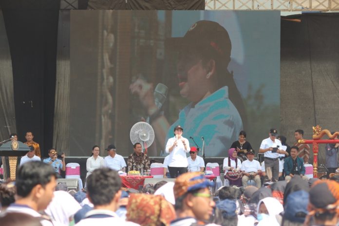 SEMARANG, DerapJuang – Menteri Koordinator Bidang Pembangunan Manusia dan Kebudayaan Republik Indonesia, Puan Maharani membuka secara resmi Orientasi Diponegoro Muda (ODM) Universitas Diponegoro di Stadion UNDIP, Tembalang, Kota Semarang, Minggu (18/8).