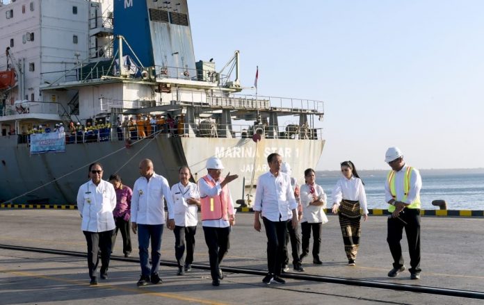 DerapJuang.com – Sebelum bertolak kembali ke Jakarta, Presiden Joko Widodo meninjau aktivitas bongkar muat Pelabuhan Tenau di Kota Kupang, pada Rabu, 21 Agustus 2019. Peninjauan ini merupakan bagian dari rangkaian kunjungan kerja Presiden ke Provinsi Nusa Tenggara Timur (NTT).