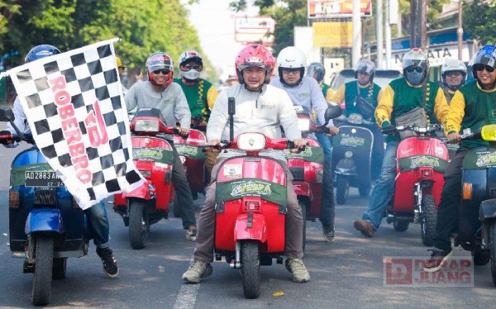 Kabupaten Karanganyar – Wakil Bupati Karanganyar, H. Rober Christanto, M.M menghadiri event Karanganyar Vespa Rally yang digelar di Camping Ground Tambak, Ngargoyoso, Minggu (17/9).