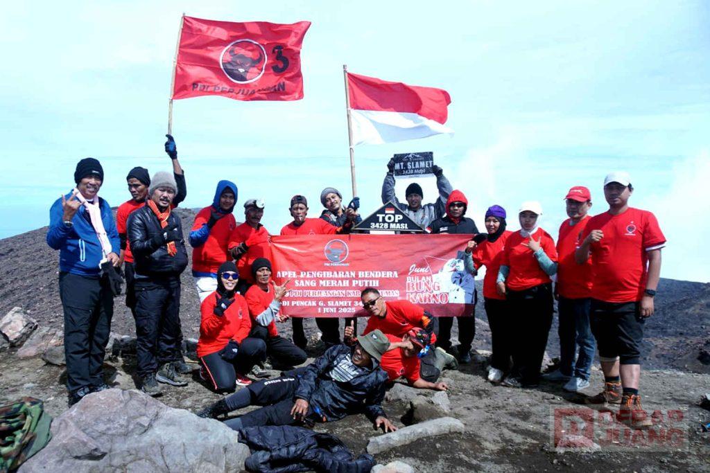 Kabupaten Banyumas – Rombongan Pendaki dari PDI Perjuangan Kab. Banyumas terdiri dari 23 kader perwakilan dari pengurus DPC, Fraksi, Satgas Cakra Buana Banyumas serta Komunitas Juang Banyumas melewati jalur pendakian dari Bambangan, Desa Kutabawa, Kecamatan Karangreja, Purbalingga