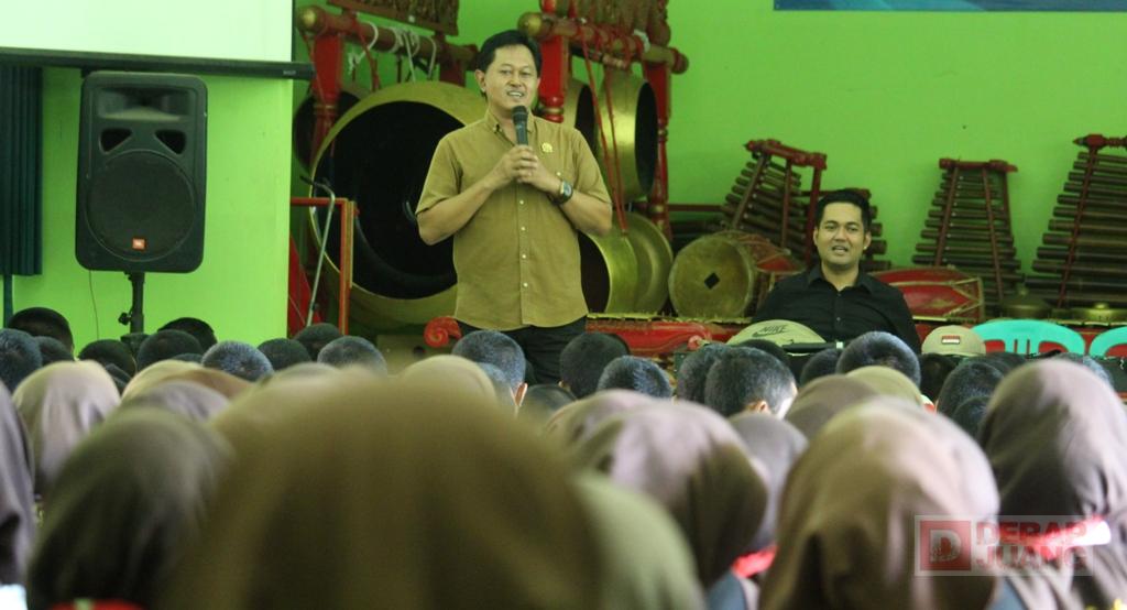 Kabupaten Banjarnegara — Anggota Komisi I DPRD Kabupaten Banjarnegara dari Fraksi PDI Perjuangan, Wahju Djatmika, memberikan motivasi kepada ratusan siswa dan siswi SMP Negeri 2 Banjarnegara dalam kegiatan DPRD Banjarnegara Go to School, Rabu (10/12/2025).
