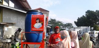 Perangi Corona, DPC PDI Perjuangan Kab. Pati Semprot Fasum Disinfektan