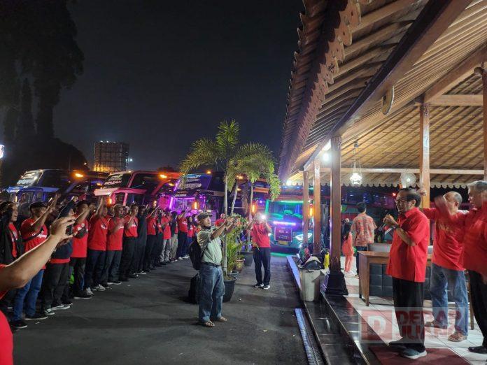 Kabupaten Banyumas – Dalam rangka acara puncak peringatan Bulan Bung Karno tanggal 24 Juni mendatang di stadion Gelora Bung Karno (GBK), DPC PDI Perjuangan Kab. Banyumas melepas 225 personel Satgas Cakrabuana PDI Perjuangan Kab. Banyumas untuk mengikuti pelatihan di Cibubur, yang dilaksanakan di halaman pendapa Wakil Bupati Banyumas, Minggu (18/6/2023).