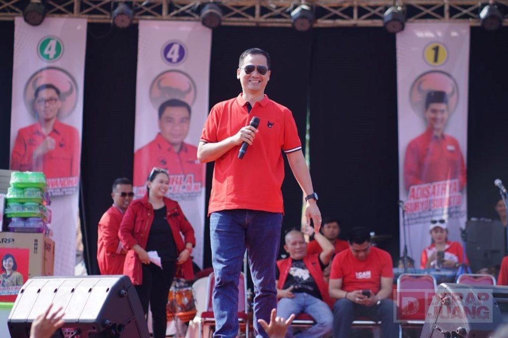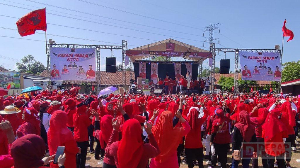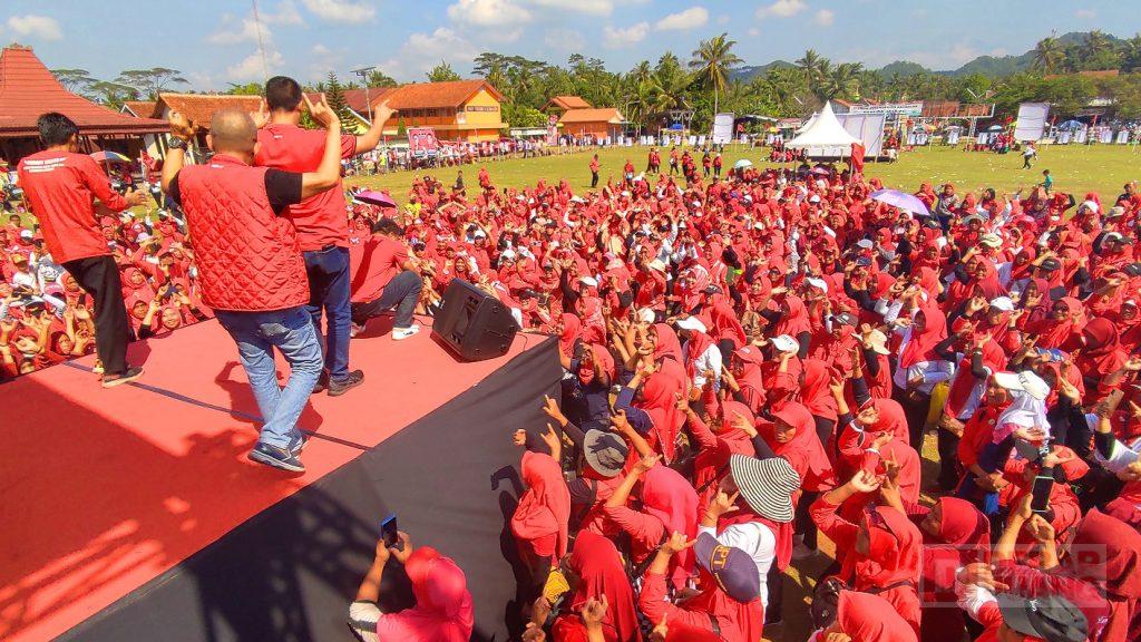“Pemilu sebentar lagi, maka saya ingatkan gunakanlah hak pilih panjenengan semua untuk Indonesia yang makin jaya, untuk surat suara yang warna kuning untuk DPR RI pusat coblos nomor 1, warna biru pilihlah nomor 4, dan warna hijau nomor 4 untuk DPRD Banyumas. Kita juga punya calon untuk DPD dari Jateng dengan kartu warna merah nomor 5. Jangan lupa, untuk presiden kita pilih nomor 3! Merdeka!,” tandasnya.