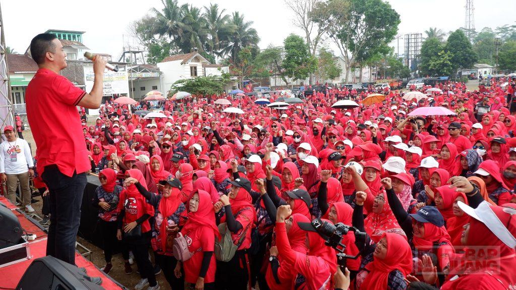 Kabupaten Banyumas – 3.500 perempuan se-Kec. Cilongok mengikuti acara Parade Sicita yang digelar oleh Anggota DPRD Jawa Tengah Fraksi PDI Perjuangan, Juli Krisdianto, S.E., bersama Anggota Komisi VI DPR RI, Adisatrya Suryo Sulisto Serta Anggota DPRD Banyumas Fraksi PDI Perjuangan, Anang Agus Kostrad Diharto, serta Komandan Tempur Elektoral Bintang Dua Dapil 6 Kab. Banyumas. Acara itu dilaksanakan di Lapangan Desa Cilongok, Minggu pagi (15/10/2023).