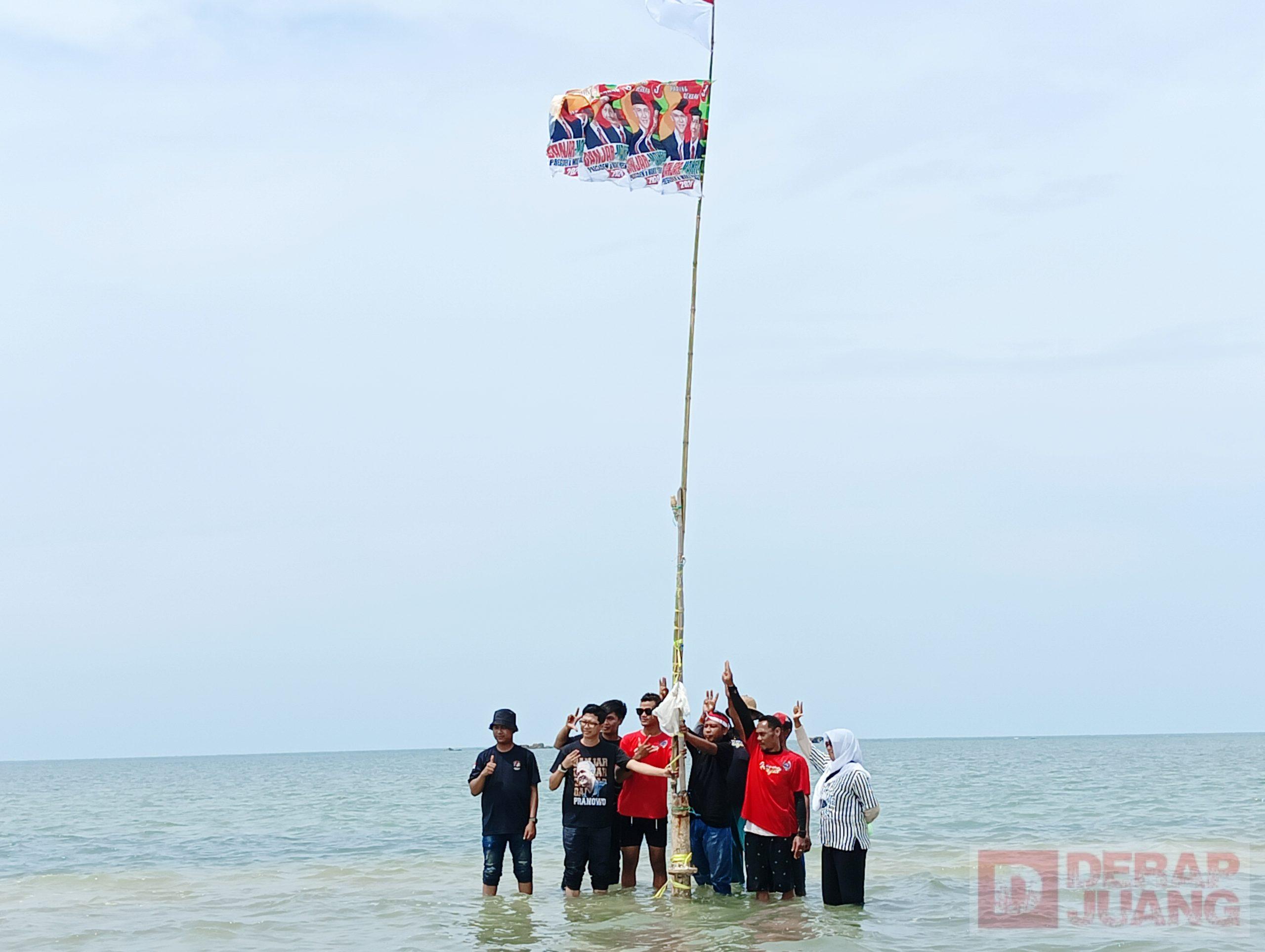 Gotong Royong Bersama Relawan, Donny Kibarkan Bendera Merah Putih di Lepas Pantai