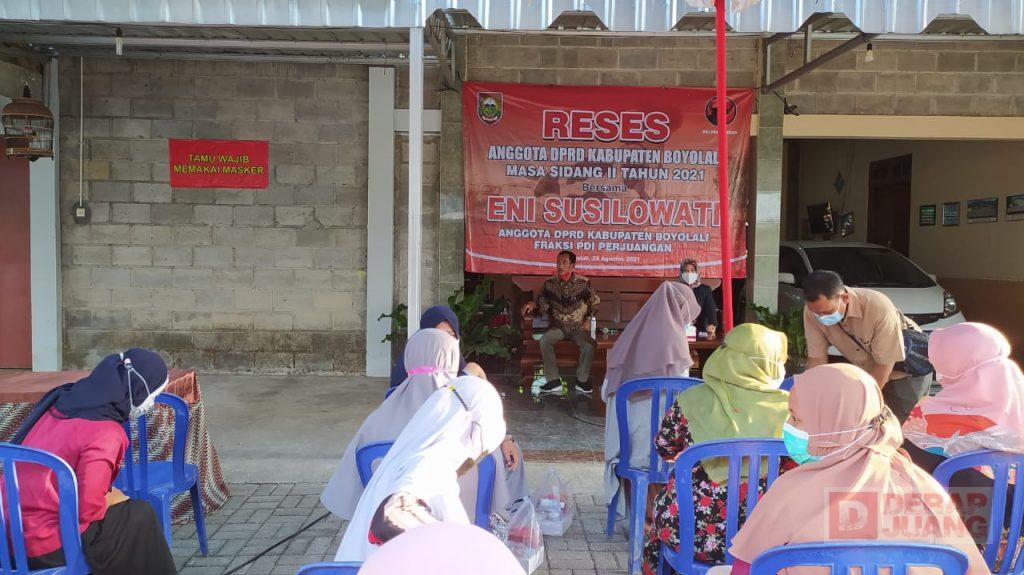 Kabupaten Boyolali – Anggota Fraksi PDI Perjuangan DPRD Kab. Boyolali, Eni Susilowati melaksanakan Reses Masa Sidang II. Kegiatan tersebut dilaksanakan di Desa Dadimulyo, Bendo, Nogosari, Sabtu (28/8/2021).