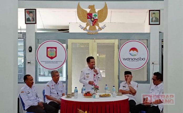 Kabupaten Wonosobo – Bupati Wonosobo, Afif Nurhidayat mengatakan jika tugas dan fungsi Badan Kesatuan Bangsa dan Politik (Kesbangpol) tidak ringan, karena menjadi arah dan petunjuk bagi kepala daerah dalam memantau kondisi wilayahnya, serta mendeteksi secara dini kemungkinan adanya permasalahan gangguan kamtibmas yang timbul di tengah masyarakat. Dengan demikian, maka Kesbangpol menurutnya harus mampu menjadi mata dan telinga pemerintah daerah dalam mengambil langkah kebijakan untuk mengatasi suatu permasalahan yang ada.