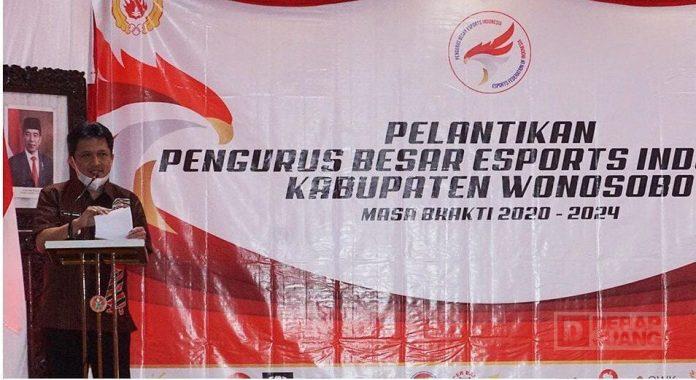 Kabupaten Wonosobo – Bupati Wonosobo, Afif Nurhidayat berikan ucapan selamat dan apresiasi kepada pengurus besar E-Sport Indonesia Wonosobo dalam pelantikan yang diselenggarakan di Pibee Restoand Caffee, Selasa (9/3/21).