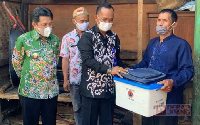 Kabupaten Wonosobo – Bupati Afif Nurhidayat didampingi Ketua Pelaksana Badan Penanggulangan Bencana Daerah (BPBD), Bambang Trie, Camat Sapuran Edy Usman, dan Kepala Desa Jolontoro Darmawan Ubyanto menyerahkan bantuan kepada Sutarman (54), warga Jolontoro RT 01 RW 01 Sapuran Wonosobo, yang menjadi korban kebakaran rumah (2/9/2021).
