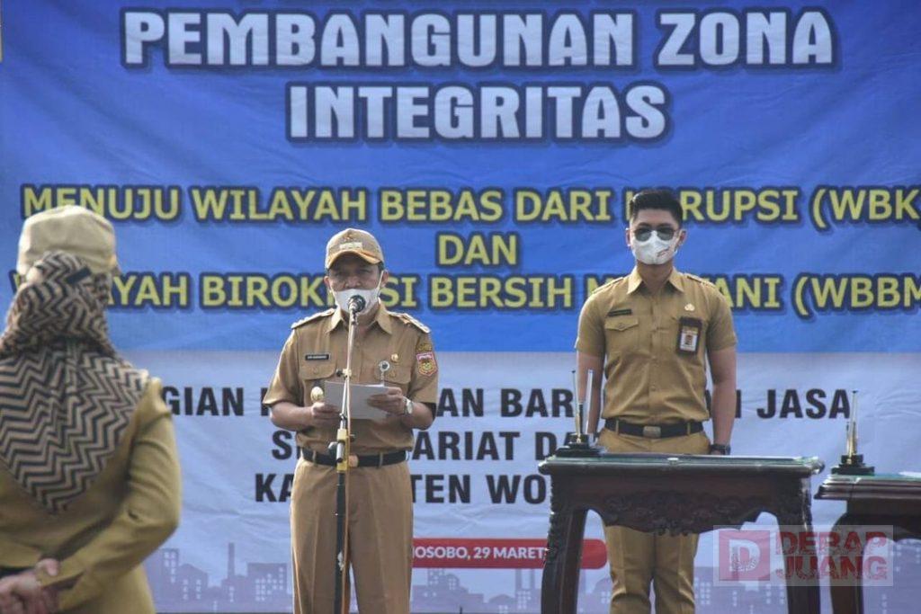 Kabupaten Wonosobo – Bupati Wonosobo, Afif Nurhidayat, memberikan apresiasi kepada Kepala Bagian Pengadaan Barang dan Jasa (PBJ) Sekretariat Daerah (Setda) Wonosobo, beserta jajarannya, yang telah menyelenggarakan acara pencanangan pembangunan zona integritas Wilayah Bebas Korupsi (WBK) dan Wilayah Birokrasi Bebas Melayani (WBBM) dengan baik. Afif berharap, seluruh karyawan dan karyawati bagian PBJ Setda Wonosobo dapat menjaga komitmen dan integritas, demi terwujudnya tujuan mulia, yaitu, Wilayah Bebas Korupsi (WBK) dan Wilayah Birokrasi Bersih dan Melayani (WBBM).