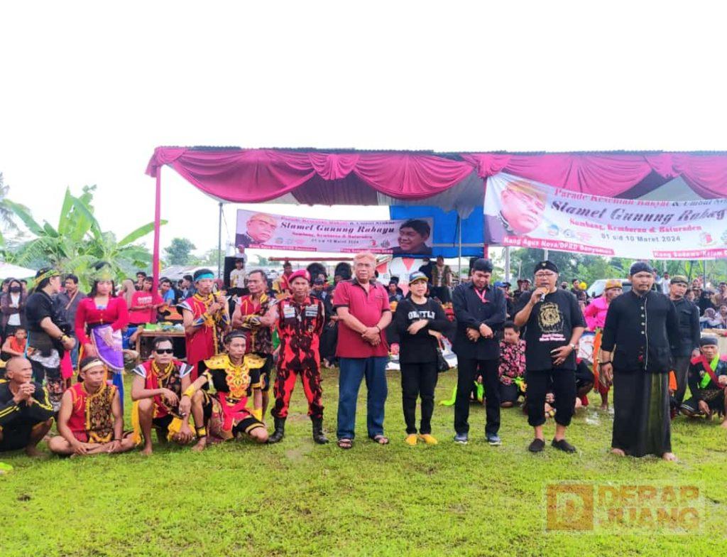 Foto : Anggota DPRD Kab. Banyumas, Agus Priyanggodo (kiri, baju merah) membuka Parade Kesenian Rakyat dan Umbul Syukur di Lapangan Tambaksogra Jum'at (01/03/2024)