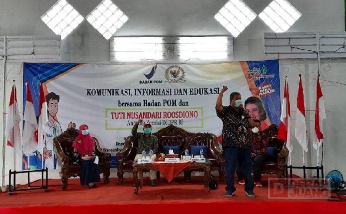Kabupaten Kendal – Bertempat di GOR Desa Lumansari Gemuh, Kendal, Ketua DPC PDI Perjuangan Kab. Kendal, Drs. Akhmat Suyuti dan Ketua Fraksi PDI Perjuangan, H. Munawir mengikuti Sosialisasi Komunikasi, Informasi, dan Edukasi oleh BPOM, Sabtu (19/06/2021).