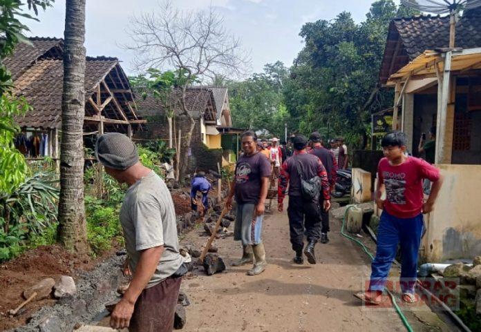 Kabupaten Semarang – Satgas Cakra Buana PDI Perjuangan Kec. Bergas turun aksi dengan bergoyong royong bersama warga Kambangan RT 01 RW 12 Desa Gondoriyo, Kec. Bergas, Kab. Semarang, Minggu (24/1/2021) pagi.