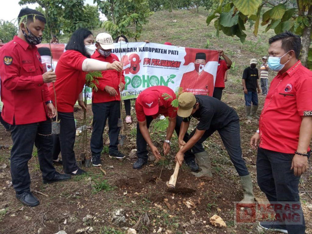 Kabupaten Pati – Dalam rangka memperingati HUT PDI Perjuangan ke 48, DPC PDI Perjuangan Kab. Pati melakukan penanaman 2.000 bibit pohon serentak di Kec. Kayen dan Kec. Tambakromo, Minggu (17/1/2021).