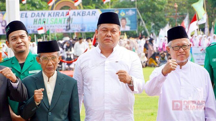 Kabupaten Pati – Ketua DPRD Kab. Pati, Ali Badrudin beserta Fraksi PDI Perjuangan Kab. Pati mengikuti acara Apel dan Kirab Akbar dalam puncak Peringatan Hari Santri Nasional Tingkat Kab. Pati yang diselenggarakan di Alun-alun Simpang Lima Pati, Sabtu (22/10/2022).