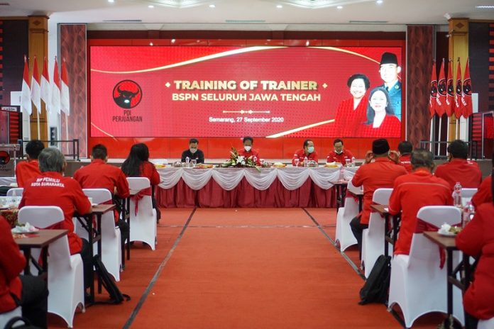 Kota Semarang – Guna mempersiapkan kualitas anggota Badan Saksi Pemilu Nasional (BSPN) pada tingkat cabang yang tersebar di seluruh Jawa Tengah. BSPN DPD PDI Perjuangan Jawa Tengah solidkan barisan dengan menyelenggarakan Training of Trainer di Panti Marhaen Kantor DPD PDI Perjuangan Jawa Tengah, Minggu (27/9/2020).