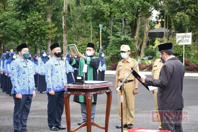 Kabupaten Wonosobo – Bupati Wonosobo, Afif Nurhidayat mengambil sumpah atau janji 327 Pegawai Negeri Sipil (PNS) di lingkungan Pemerintah Kabupaten Wonosobo. Bertempat di halaman Pendopo Bupati, Senin (20/9/2021).