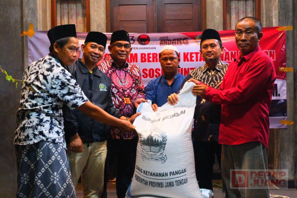 Di akhir acara tasyakuran andang juga menyerahkan bantuan langsung berupa biji kedelai kepada produsen tahu tempe Pecangaan wetan