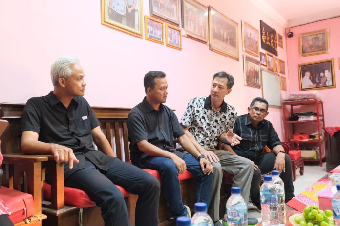 Kabupaten Jepara – Andang Wahyu Triyanto, Ketua DPC PDI Perjuangan Jepara bersama Agustina Wilujeng Pramestuti selaku Ketua Tim Pemenangan Daerah (TPD) Jawa Tengah mengajak Ganjar Pranowo berkunjung ke Kelenteng Hian Thian Siang Tee, Klenteng Tertua di Indonesia, Selasa (02/01/2024).