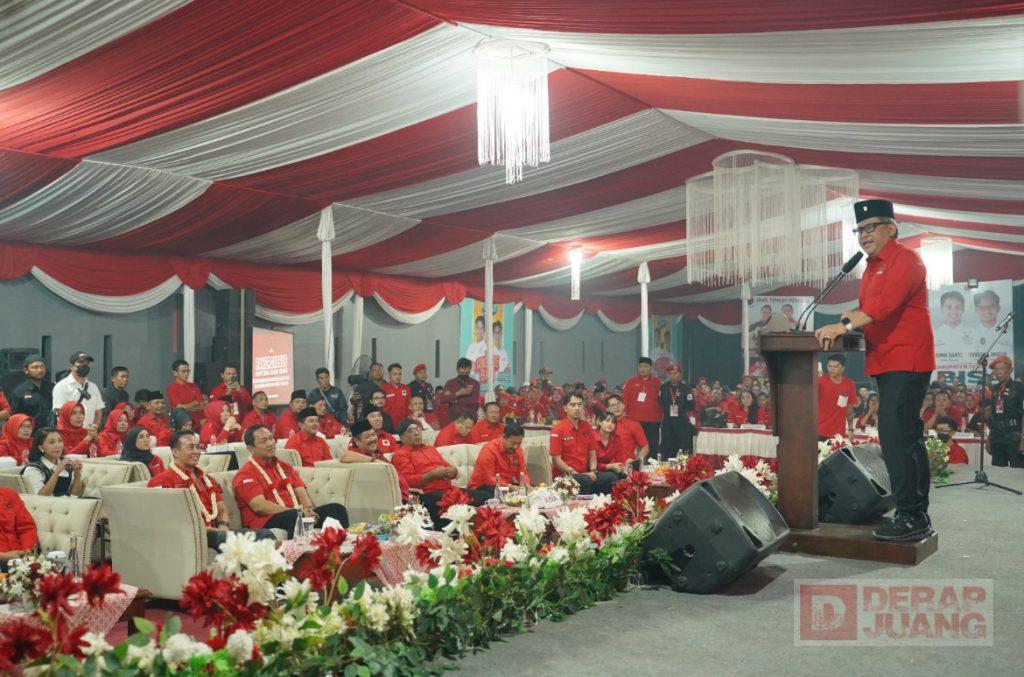 Kabupaten Tegal – DPC PDI Perjuangan Kabupaten Tegal, Kota Tegal, dan Kabupaten Brebes gelar Rapat Kerja Cabang Khusus (Rakercabsus) yang dihadiri Cagub-cawagub PDI Perjuangan Jawa Tengah Andika Perkasa & Hendrar Prihadi atau Andika-Hendi dan Sekretaris Jenderal DPP PDI Perjuangan Hasto Kristiyanto di Kantor DPC PDI Perjuangan Kab. Tegal, Selasa (17/9/2024).