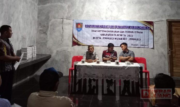 Kabupaten Cilacap – Membekali keterampilan kepada warga dan pemuda, Anggota Komis B DPRD Cilacap, Andry Leonard Rotty menyalurkan bantuan peralatan perbengkelan dari Dinas Ketenagakerjaan dan Perindustrian Cilacap di Desa Jeruklegi Wetan, Jumat (28/7/2023).