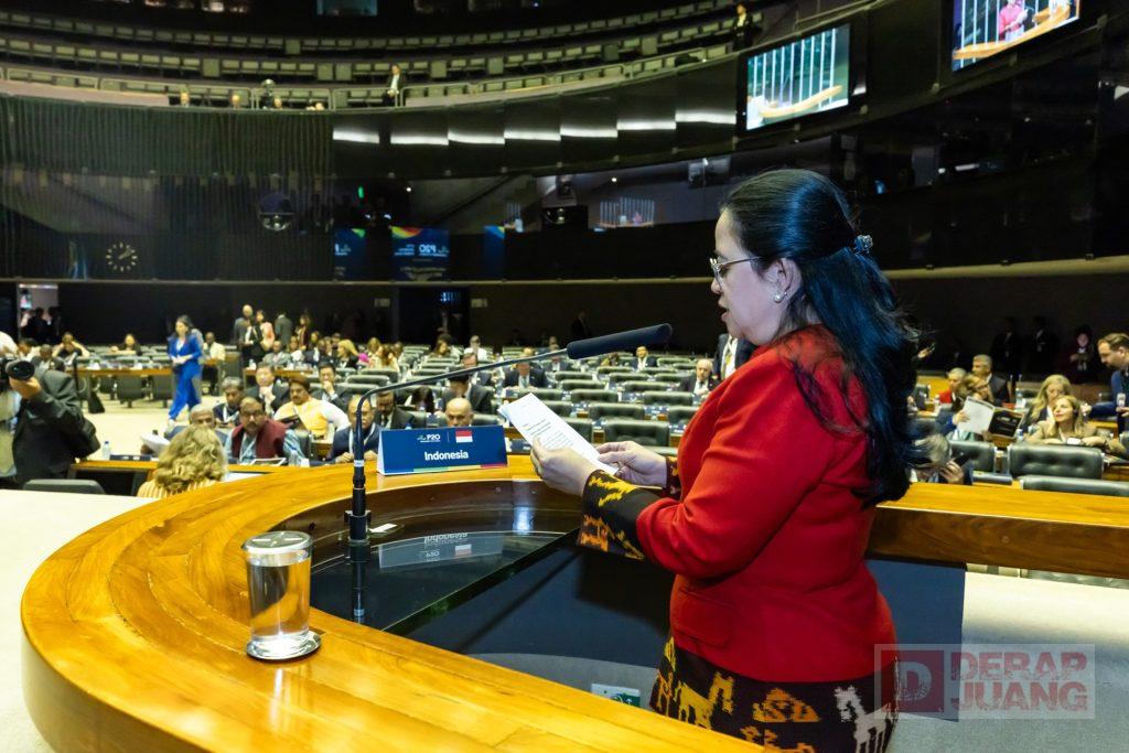 “Kita, parlemen, harus menggunakan kewenangan kita secara efektif untuk mengadopsi undang-undang yang relevan yang menjunjung tiga pilar pembangunan berkelanjutan, yaitu keberlanjutan ekonomi, sosial dan lingkungan,” ungkap Mbak Puan.