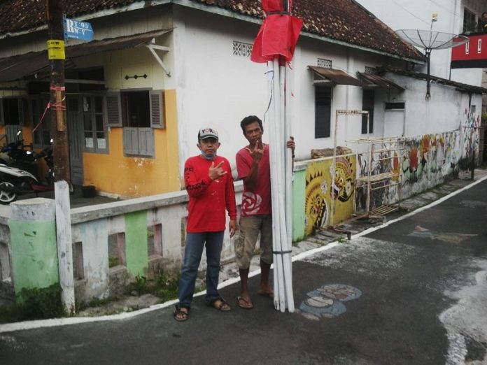 Kota Magelang – Pengurus Ranting PDI Perjuangan Gelangan, Kota Magelang melakukan penyerahan bendera kepada Pengurus Anak Ranting PDI Perjuangan yang berada di Kelurahan Gelangan. Bendera yang dibagikan merupakan bendera sisa Pileg 2019 yang masih tersimpan rapi di kediaman Ketua Ranting PDI Perjuangan Gelangan.