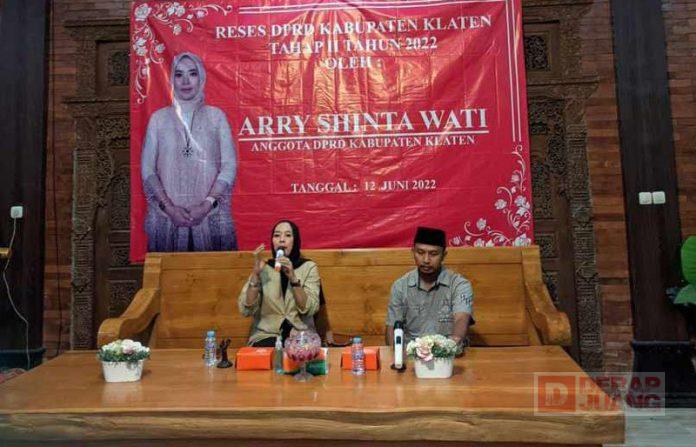 Kabupaten Klaten – Anggota Fraksi PDI Perjuangan Klaten, Arry Shinta Wati menggelar Reses Tahap II Tahun 2022 guna bersilaturahmi dan menyerap aspirasi masyarakat di Desa Canan, Kecamatan Wedi, Minggu (12/6/2022).
