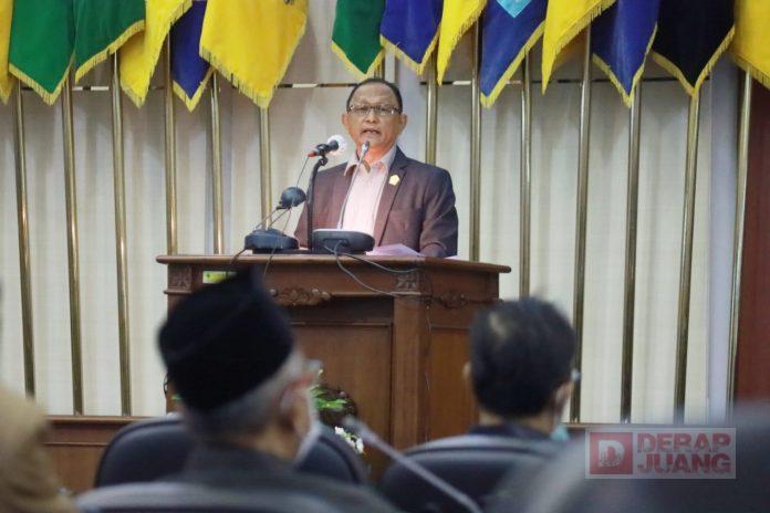 Kota Pekalongan – Legislator PDI Perjuangan DPRD Provinsi Jawa Tengah, Agung Satria Hermawan membacakan penjelasan Komisi D terkait Rancangan Peraturan Daerah (Raperda) Pengelolaan Kualitas Air dan Pengendalian Pencemaran Air Lintas Kabupaten/Kota dalam rapat Paripurna DPRD Provinsi Jawa Tengah, Senin (19/9/2022).