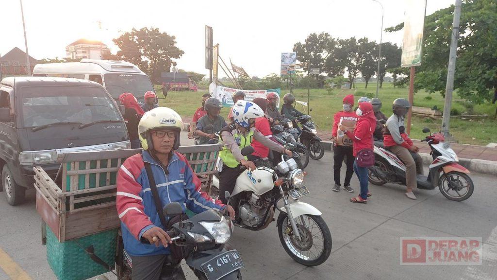 Kabupaten Pemalang – Badan Penanggulangan Bencana (BAGUNA) DPC PDI Perjuangan Kab. Pemalang membagikan ratusan takjil menjelang berbuka puasa. Kegiatan tersebut dilaksanakan di Perempatan Gandulan, tepatnya di Gerbang Tol Pemalang, Minggu, (18/4/2021).