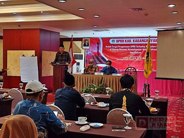Kabupaten Karanganyar – Pentingnya Peran pengawasan dan kontrol yang dimiliki DPRD terus dikuatkan. Menggandeng LPM Untag Semarang, DPRD Karanganyar gelar Bedah Fungsi terkait Kebijakan Pemerintah di Bidang Ekonomi, Kesejahteraan Masyarkat, Infrastuktur dan Hukum. Kegiatan yang digelar di Hotel Grand Arkenso Parkview tersebut dihadiri oleh Ketua DPRD Karanganyar, Bagus Selo, Pimpinan dan Anggota DPRD, praktisi, serta akademisi. Selasa (8/10/2022)