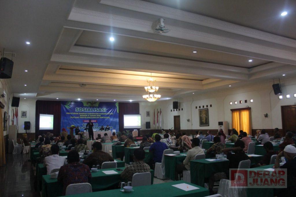 Kabupaten Karanganyar – Ketua DPRD Kab. Karanganyar, Bagus Selo, bersama beberapa Anggota DPRD Karanganyar menghadiri sosialisasi Peraturan Daerah (Perda) Nomor 6 Tahun 2020, tentang Penyelenggaraan Pertanian. Sosialisasi ini dilakukan di Taman Sari, Karanganyar, Senin, (20/9/2021).