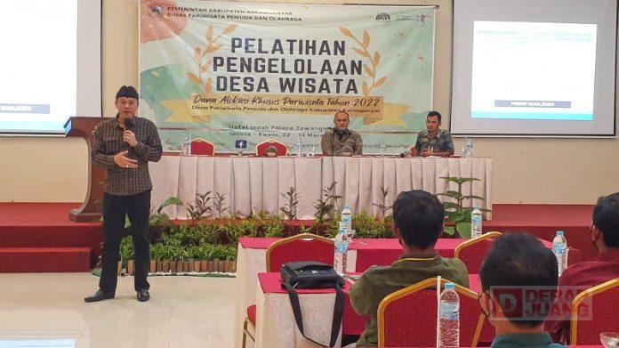 Kegiatan Pelatihan Pengelolaan Desa Wisata Kabupaten Karanganyar ini dilaksanakan di Hotel Indah Palace Tawangmangu Karanganyar, Rabu (23/3/2022).