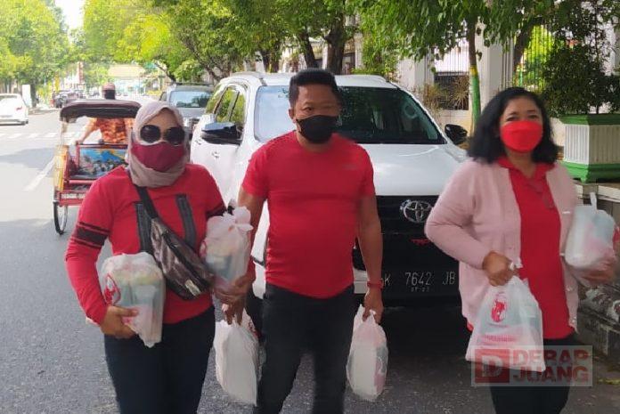 Kabupaten Pati – DPC PDI Perjuangan Kab. Pati membagikan bantuan sembako kepada tukang becak yang berada di seluruh wilayah Kab. Pati, pada Jumat (16/07/2021) pagi hingga siang.