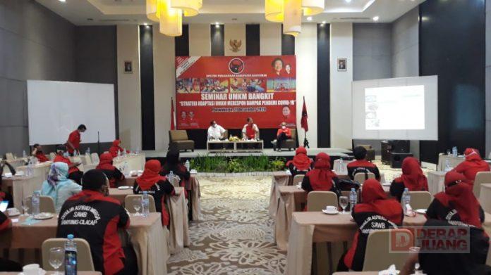 Kabupaten Banyumas – Dalam rangka menangani dampak Pandemi Covid-19, DPC PDI Perjuangan Kab. Banyumas melalui Wakil Ketua Bidang Industri, Tenaga Kerja, Jaminan Sosial, Koperasi dan UMKM, menyelenggarakan seminar UMKM Bangkit se-Kab. Banyumas. Kegiatan seminar yang diikuti oleh seluruh pelaku UMKM yang berada di Kab. Banyumas, dilaksanakan di Hotel Surya