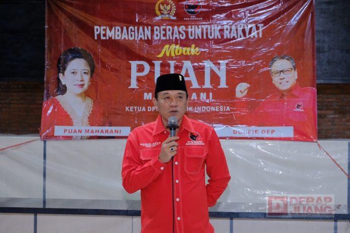 Kabupaten Karanganyar – Melalui program 10 ribu paket beras premium, Ketua DPC PDI Perjuangan Karanganyar, Bagus Selo mendistribusikan paket bahan makanan pokok berupa beras bagi masyarakat. Adapun hal tersebut merupakan program Partai yang direalisasikan dengan pemberian beras dengan jumlah masing-masing lima kilogram. Kegiatan dilakukan simbolis di Wilayah Kebakkramat, Minggu (2/1/2022).