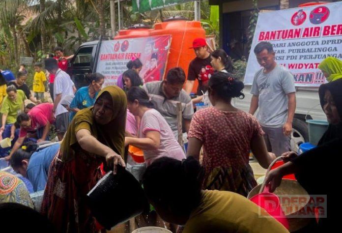 Kabupaten Purbalingga – Memasuki musim kemarau, beberapa daerah mengalami kekeringan, salah satunya di daerah Kecamatan Kejobong. Hal ini dipengaruhi oleh letak geografis daerah tersebut yang berada di daratan tinggi dan kondisi musim yang mengalami anomali. Dalam rangka membantu masyarakat Kecamatan Kejobong yang sedang mengalami kekeringan, Anggota DPRD Kabupaten Purbalingga Fraksi PDI Perjuangan, Bayu Widyatama menggelar Bakti Sosial Penyaluran Air Bersih untuk masyarakat di sejumlah wilayah desa di Kecamatan Kejobong. Kegiatan ini dilaksanakan sejak masyarakat mengalami kekeringan pada akhir Agustus 2023 sampai dengan saat ini.