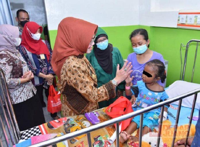 Kabupaten Sukoharjo – Bupati Sukoharjo, Etik Suryani terlihat jalan buru buru setelah dari acara di Kecamatan Gatak. Ada sesuatu yang urgent sehingga dirinya harus menuju ke RSUD Ir. Soekarno. Sesampainya di RSUD Ir. Soekarno, Etik Suryani bergegas menuju bangsal perawatan anak, Kamis (16/2/2023).